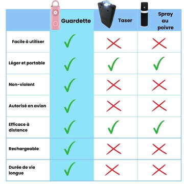 Contrairement aux sprays ou tasers, La Guardette est 100 % légale et non violente.